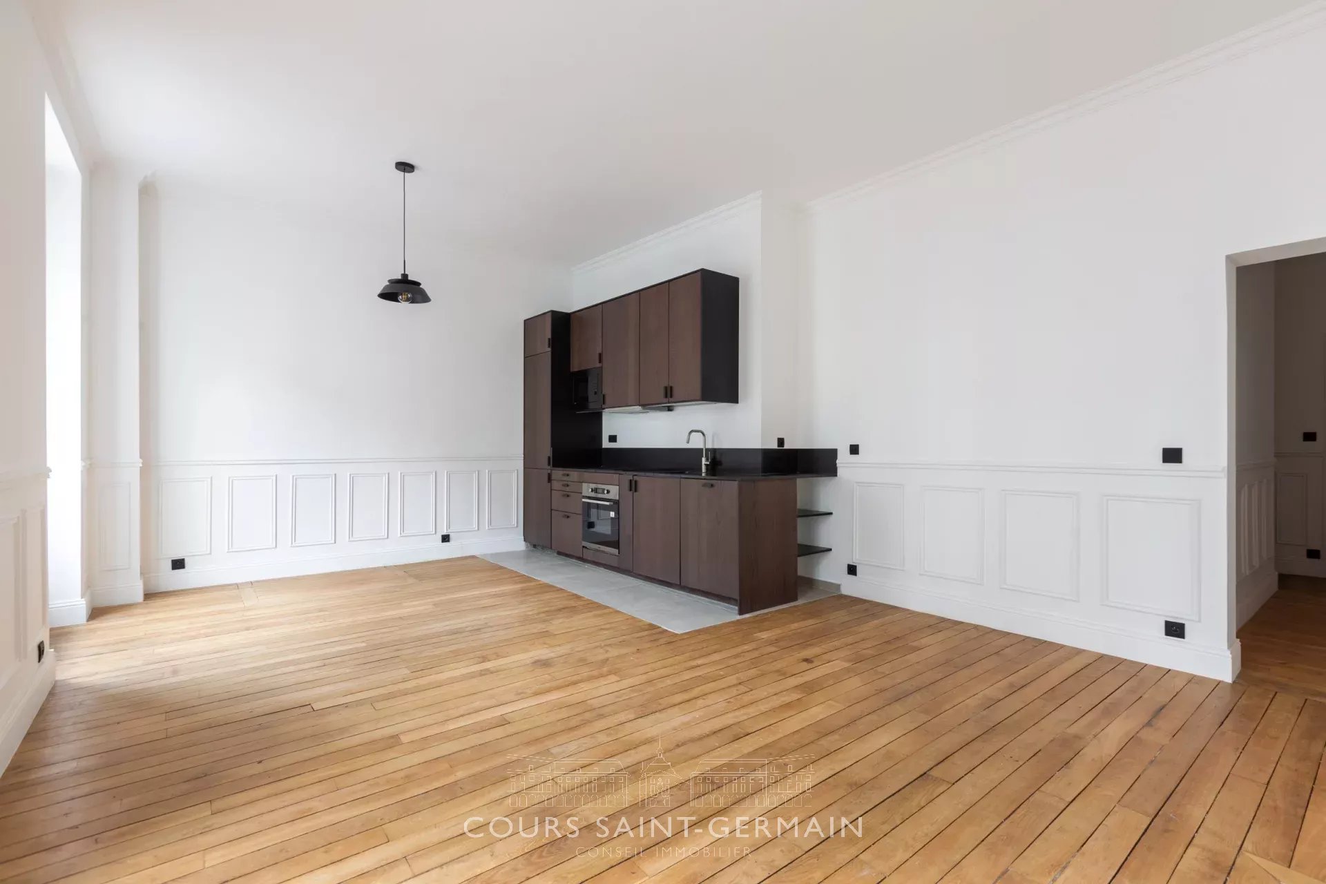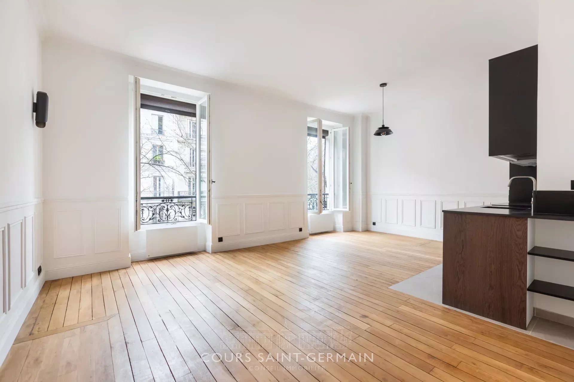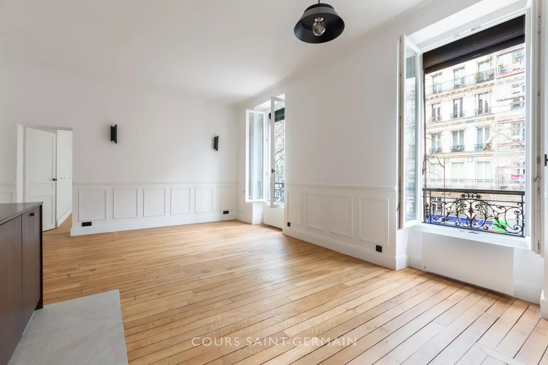 Situé boulevard de la Tour-Maubourg, entre la rue de Grenelle et la rue Saint-Dominique, au 2ᵉ étage sans ascenseur d’un élégant immeuble haussmannien de 1875, cet appartement de 64,2 m², entièrement refait à neuf, offre un cadre de vie recherché au cœur du 7ᵉ arrondissement. Il se compose d’une entrée avec toilettes et lave-mains séparés, desservant un double séjour avec cuisine ouverte, bénéficiant d’une exposition Est et d'une hauteur sous plafond de plus de 3 mètres. Le charme de l’ancien est conservé, avec de belles moulures. La cuisine, entièrement équipée, s’intègre harmonieusement à l’espace de vie, idéal pour recevoir. La partie nuit comprend deux chambres, dont une sur rue et une sur cour, offrant un agencement fonctionnel et équilibré. Une salle de douche complète l’ensemble. L’appartement est en excellent état, prêt à emménager, et associe avec élégance cachet haussmannien et rénovation contemporaine de qualité. Une cave complète ce bien.