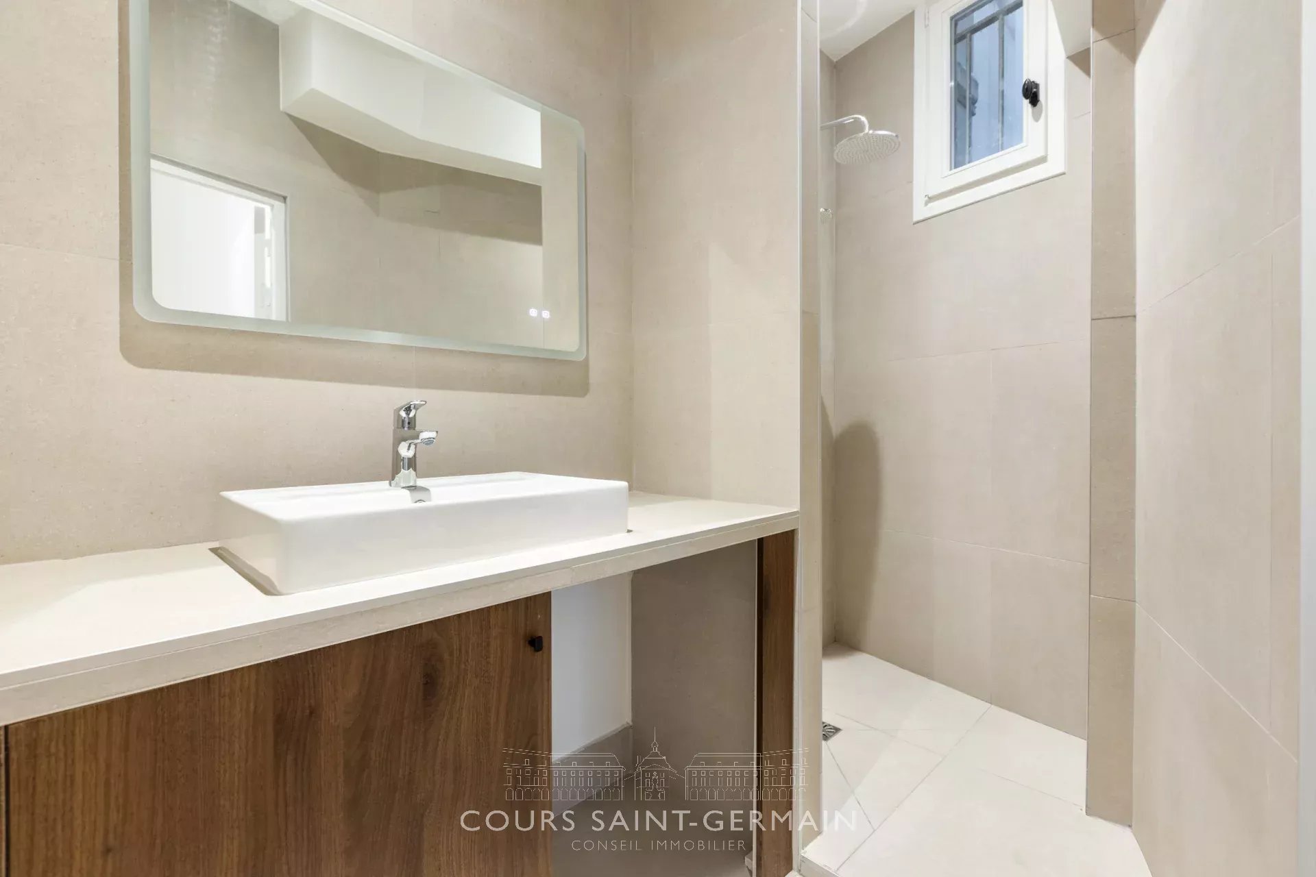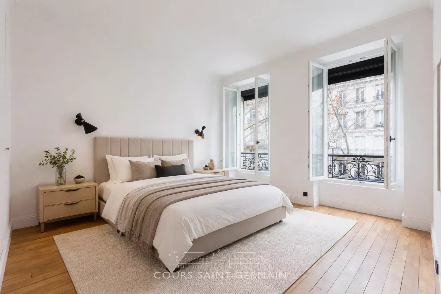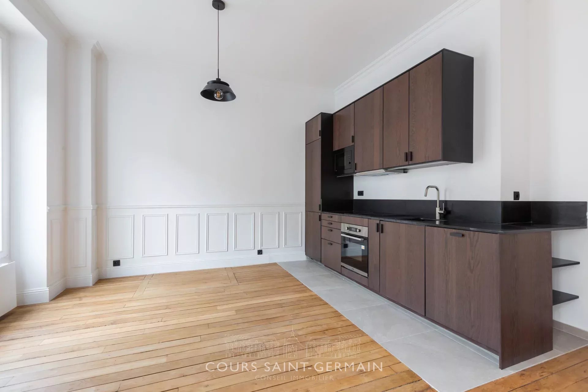 Situé boulevard de la Tour-Maubourg, entre la rue de Grenelle et la rue Saint-Dominique, au 2ᵉ étage sans ascenseur d’un élégant immeuble haussmannien de 1875, cet appartement de 64,2 m², entièrement refait à neuf, offre un cadre de vie recherché au cœur du 7ᵉ arrondissement. Il se compose d’une entrée avec toilettes et lave-mains séparés, desservant un double séjour avec cuisine ouverte, bénéficiant d’une exposition Est et d'une hauteur sous plafond de plus de 3 mètres. Le charme de l’ancien est conservé, avec de belles moulures. La cuisine, entièrement équipée, s’intègre harmonieusement à l’espace de vie, idéal pour recevoir. La partie nuit comprend deux chambres, dont une sur rue et une sur cour, offrant un agencement fonctionnel et équilibré. Une salle de douche complète l’ensemble. L’appartement est en excellent état, prêt à emménager, et associe avec élégance cachet haussmannien et rénovation contemporaine de qualité. Une cave complète ce bien.