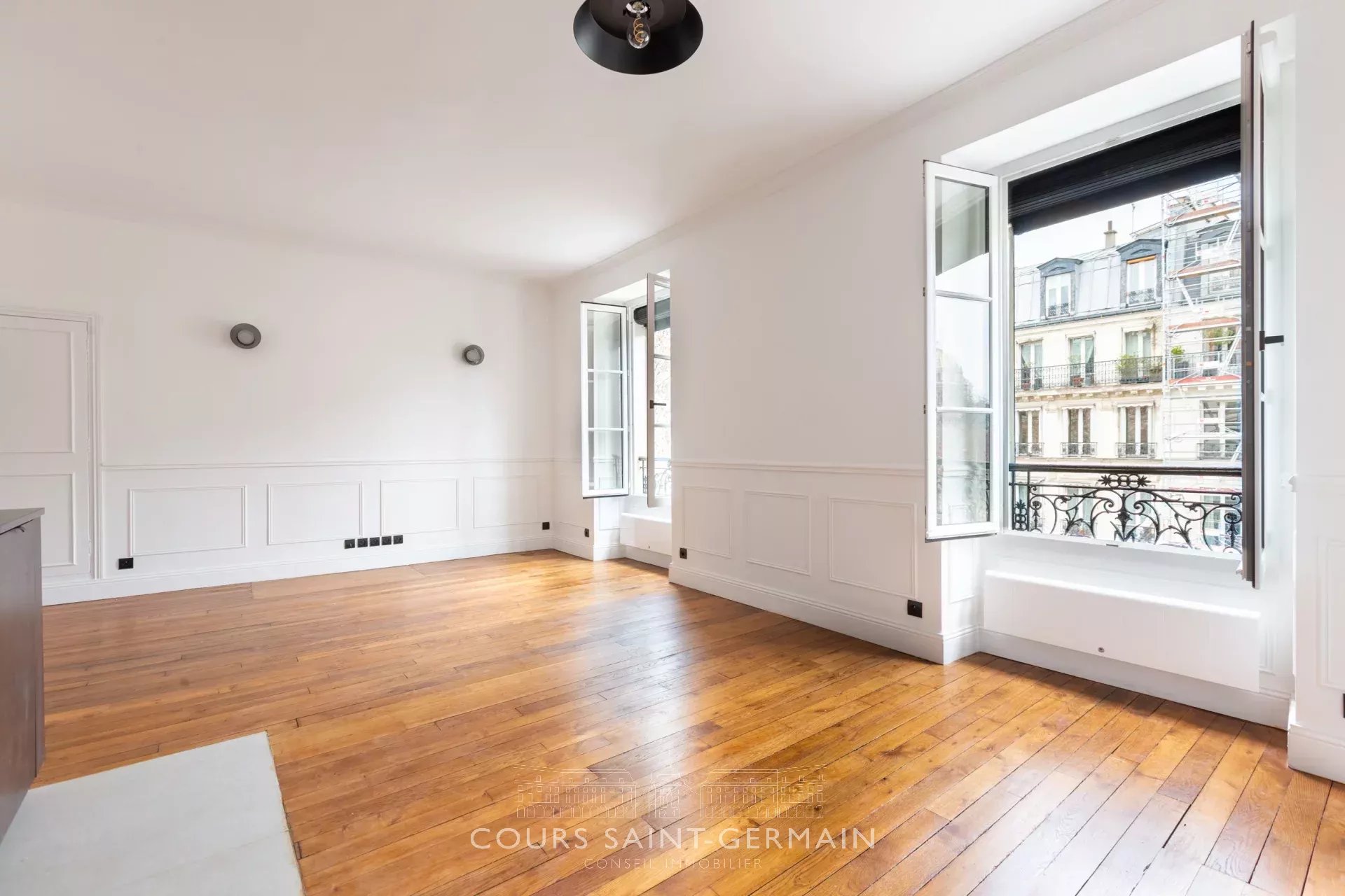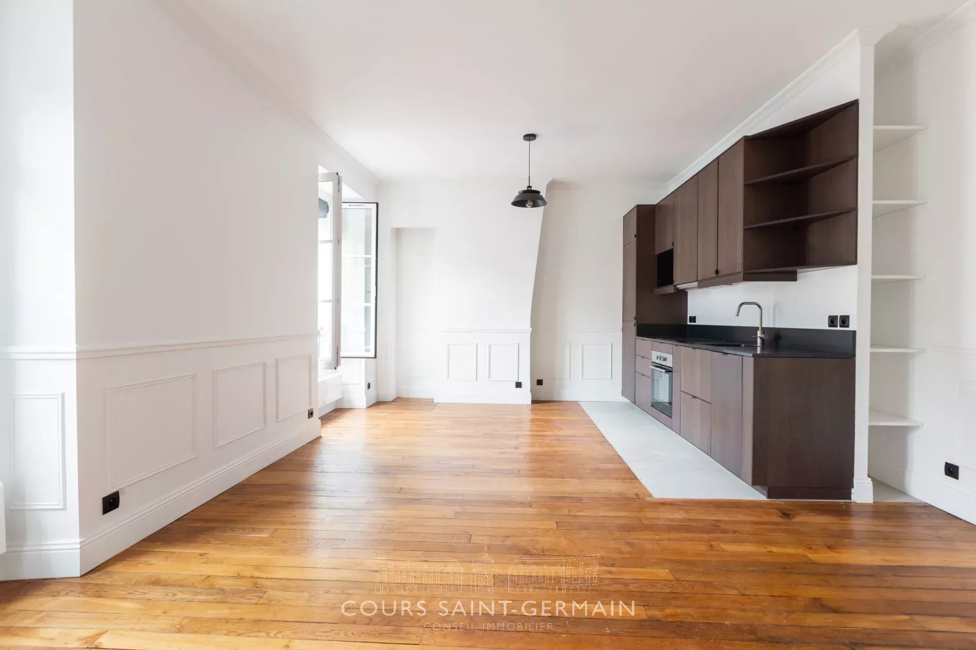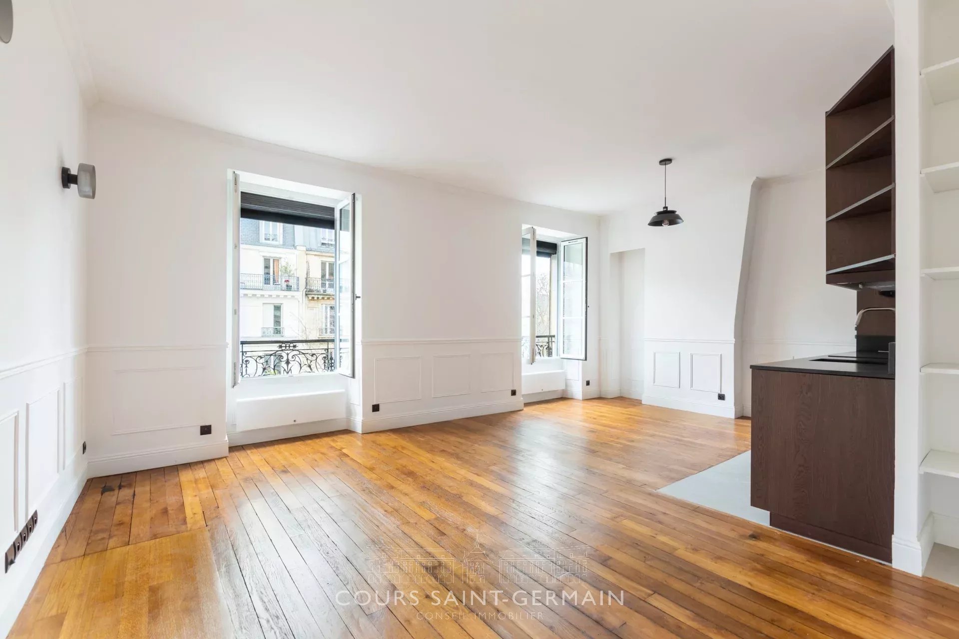 Situé entre la rue de Grenelle et la rue Saint-Dominique, au 4ᵉ étage sans ascenseur d’un élégant immeuble haussmannien de 1875, cet appartement de 46.02 m², entièrement refait à neuf, offre un cadre de vie recherché au cœur du 7ᵉ arrondissement. Il se compose d’une entrée avec toilettes et lave-mains séparés, desservant un double séjour lumineux avec cuisine ouverte, bénéficiant d’une exposition Est. L’étage élevé apporte une belle luminosité à l’appartement. Le charme de l’ancien est préservé, avec de belles moulure. La cuisine, entièrement équipée, s’intègre harmonieusement à l’espace de vie, idéal pour recevoir. La chambre, au calme sur cour, dispose de sa salle de douche attenante, offrant confort et intimité. L’ensemble est en excellent état, prêt à emménager, et associe le charme de l’ancien à une rénovation contemporaine de qualité. Une cave complète ce bien.