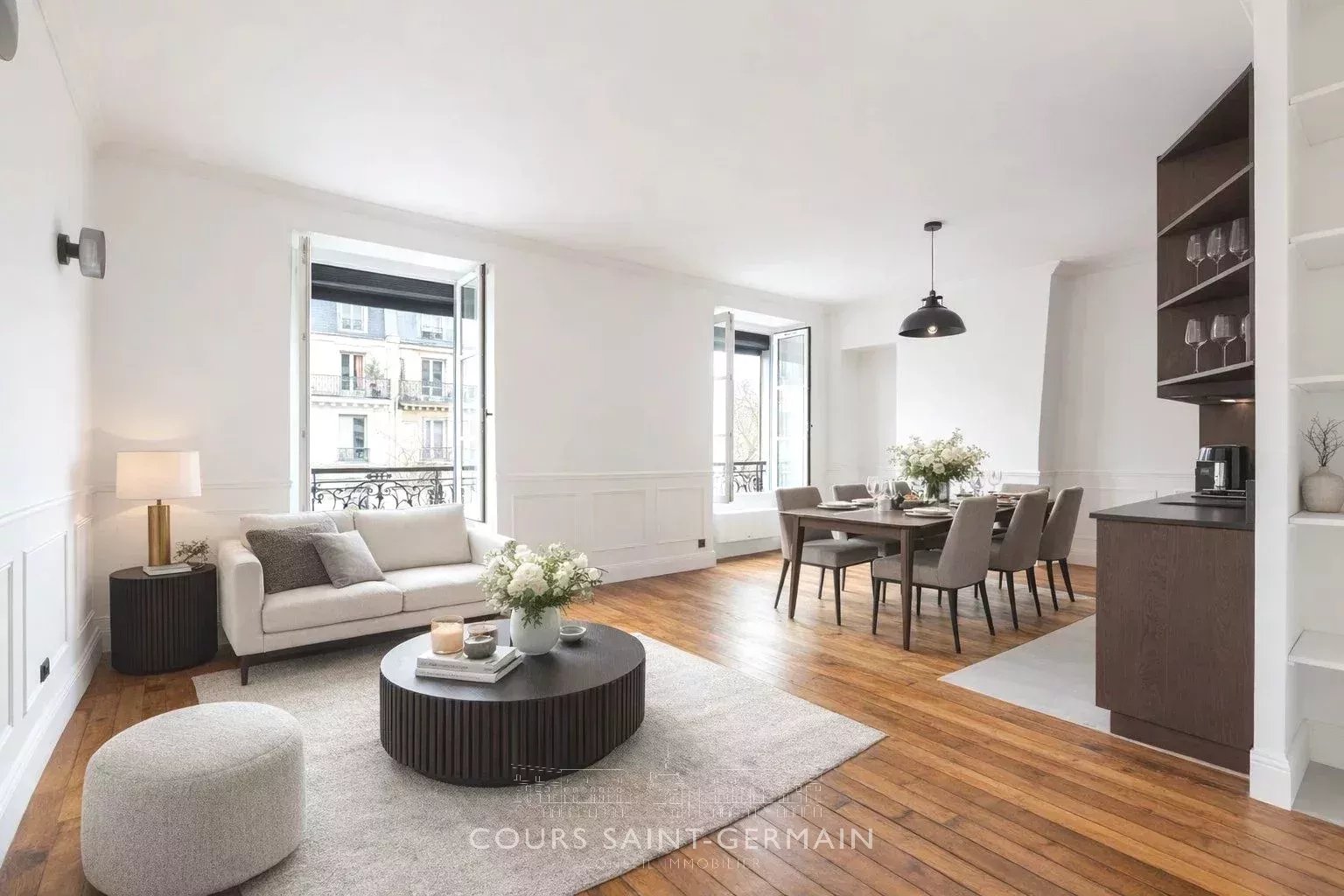Situé entre la rue de Grenelle et la rue Saint-Dominique, au 4ᵉ étage sans ascenseur (probabilité importante d'une mise en place d'ascenseur) d’un élégant immeuble haussmannien de 1875, cet appartement de 46.02 m², entièrement refait à neuf, offre un cadre de vie recherché au cœur du 7ᵉ arrondissement. Il se compose d’une entrée avec toilettes et lave-mains séparés, desservant un double séjour lumineux avec cuisine ouverte, bénéficiant d’une exposition Est. L’étage élevé apporte une belle luminosité à l’appartement. Le charme de l’ancien est préservé, avec de belles moulure. La cuisine, entièrement équipée, s’intègre harmonieusement à l’espace de vie, idéal pour recevoir. La chambre, au calme sur cour, dispose de sa salle de douche attenante, offrant confort et intimité. L’ensemble est en excellent état, prêt à emménager, et associe le charme de l’ancien à une rénovation contemporaine de qualité. Une cave complète ce bien.
