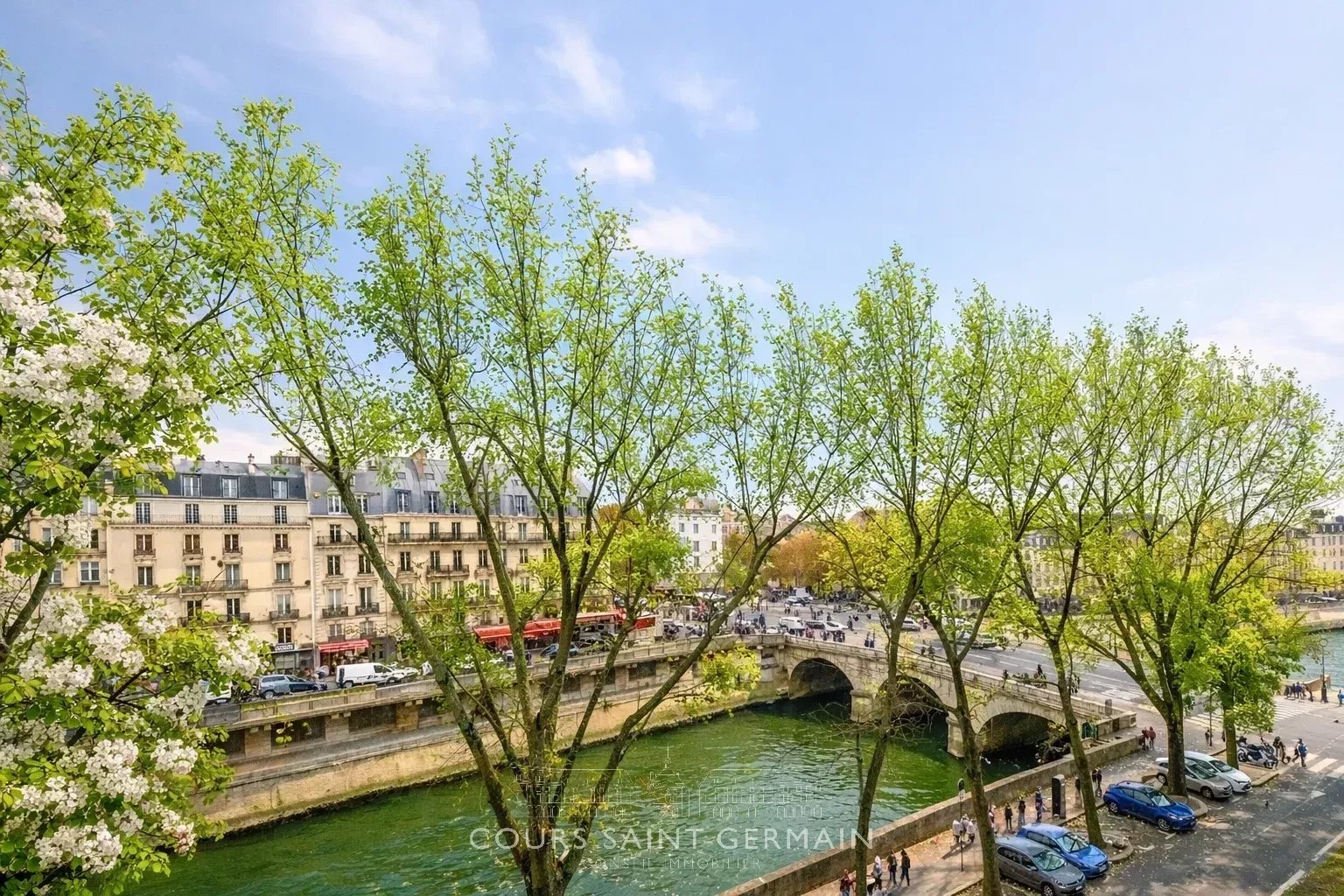 Dans l’un des très rares immeubles d’habitation de l’Île de la Cité, au 3ᵉ étage avec ascenseur d’un superbe immeuble gardienné, découvrez un appartement qui coche toutes les cases du bien d’exception. Seul à l’étage, il bénéficie d’une exposition plein sud et de cinq fenêtres directement sur la Seine, offrant une luminosité spectaculaire et un charme parisien sans compromis. L’appartement dévoile une magnifique double réception de 56.18 m² aux volumes superbes, un plan traversant comprenant trois chambres, deux salles d’eau avec toilettes, ainsi qu’une cuisine indépendante. Un studio attenant de 27 m², facilement raccordable ou conservable comme espace autonome, vient compléter l’ensemble. La hauteur sous plafond de trois mètres restitue toute la noblesse de l’ancien, tandis qu’une grande cave saine — rare dans ce secteur historique — ajoute une vraie valeur d’usage. L’ensemble est à rénover, offrant une occasion unique d’imaginer un intérieur sur-mesure dans l’un des lieux les plus prestigieux de la capitale. Ce que vous achetez vraiment : un emplacement unique, une vue qui ne laisse personne indifférent et des volumes remarquables.