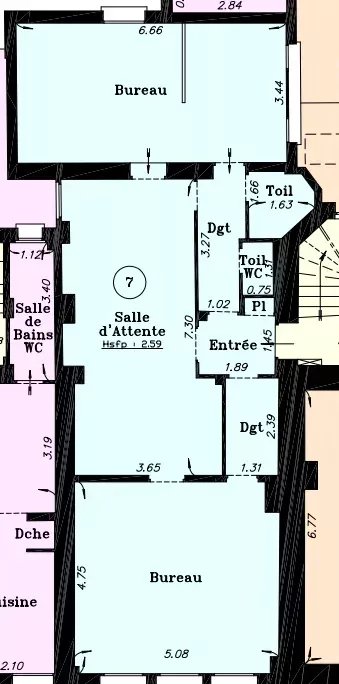 Henri-Barbusse/ Président Wilson- Locaux 3 pièces principales, au 1° étage droite accessible par ascenseur en montant 4 marches, composé d‘une entrée, de deux dégagements, d’une pièce principale (salle d’attente), de deux bureaux sur rue et cour ainsi que d’un toilette indépendant. Anciennement utilisé en cabinet médical, il se prête parfaitement à n'importe quelle utilisation en bureau. Idéalement situé au coeur des commerces.