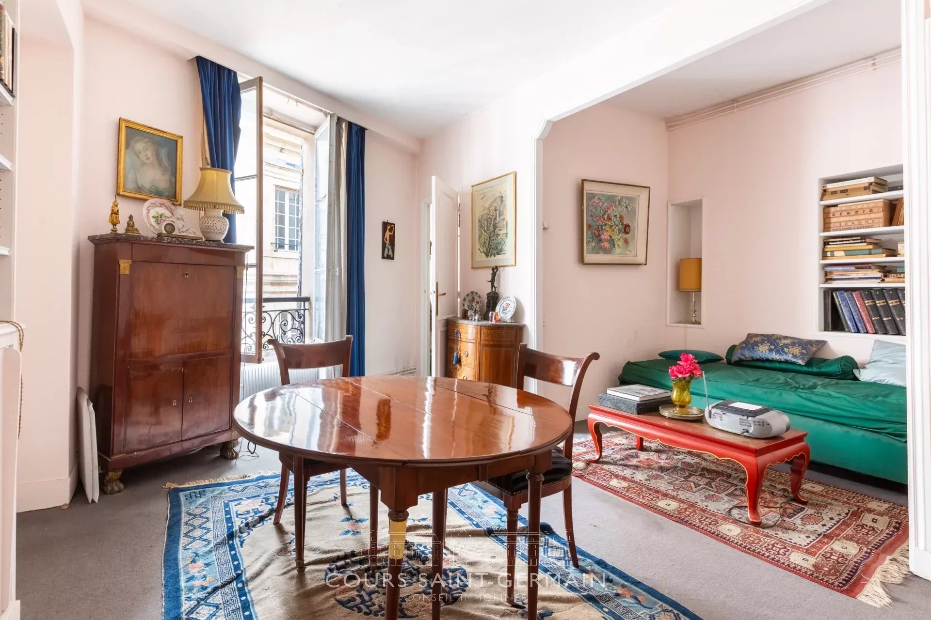 EXCLUSIVITE - Paris 6 Proche Pont Neuf, Quai des Grands Augustins, Lapérouse... Au coeur de Saint Germain des près, au 3e étage d'un bel immeuble Pierre de taille 18ème, avec ravissante cour pavée. Appartement traversant à rénover entièrement, offrant un superbe potentiel. Beaux volumes, parquet ancien, cheminée, Triple Expo et soleil. 61,42 m² Loi carrez, 63,63 m² au sol composé ainsi : une entrée, un bureau, un séjour, une cuisine séparée, une chambre, une salle de bains et un wc indépendant. Une cave complète ce bien. Métro Odéon, Saint Michel ou Pont Neuf. Magnifique adresse au coeur de Paris ! Proche de tout à pied, Rive Gauche et Droite, Samaritaine etc Métro Odéon, Saint Michel et Pont Neuf