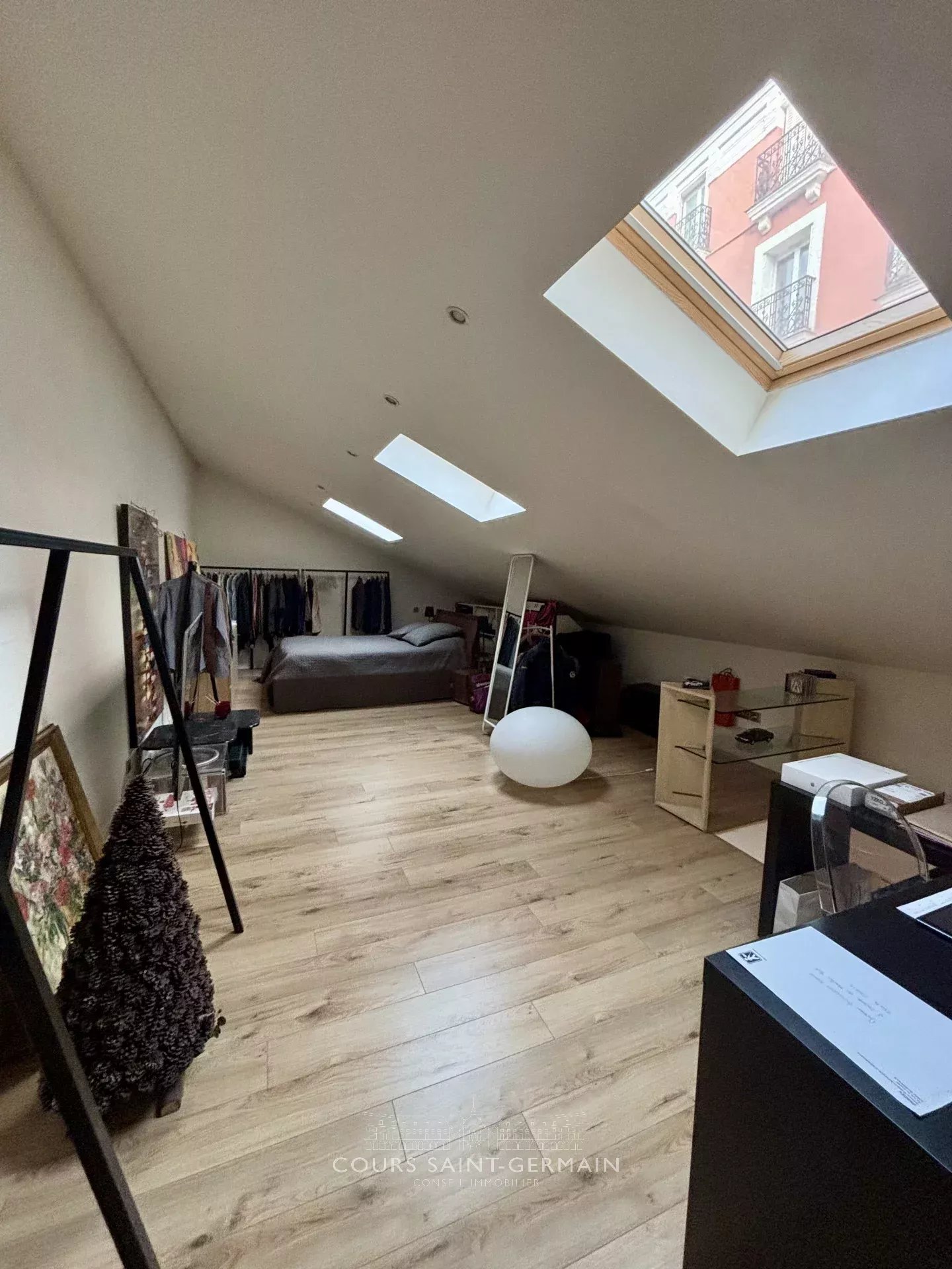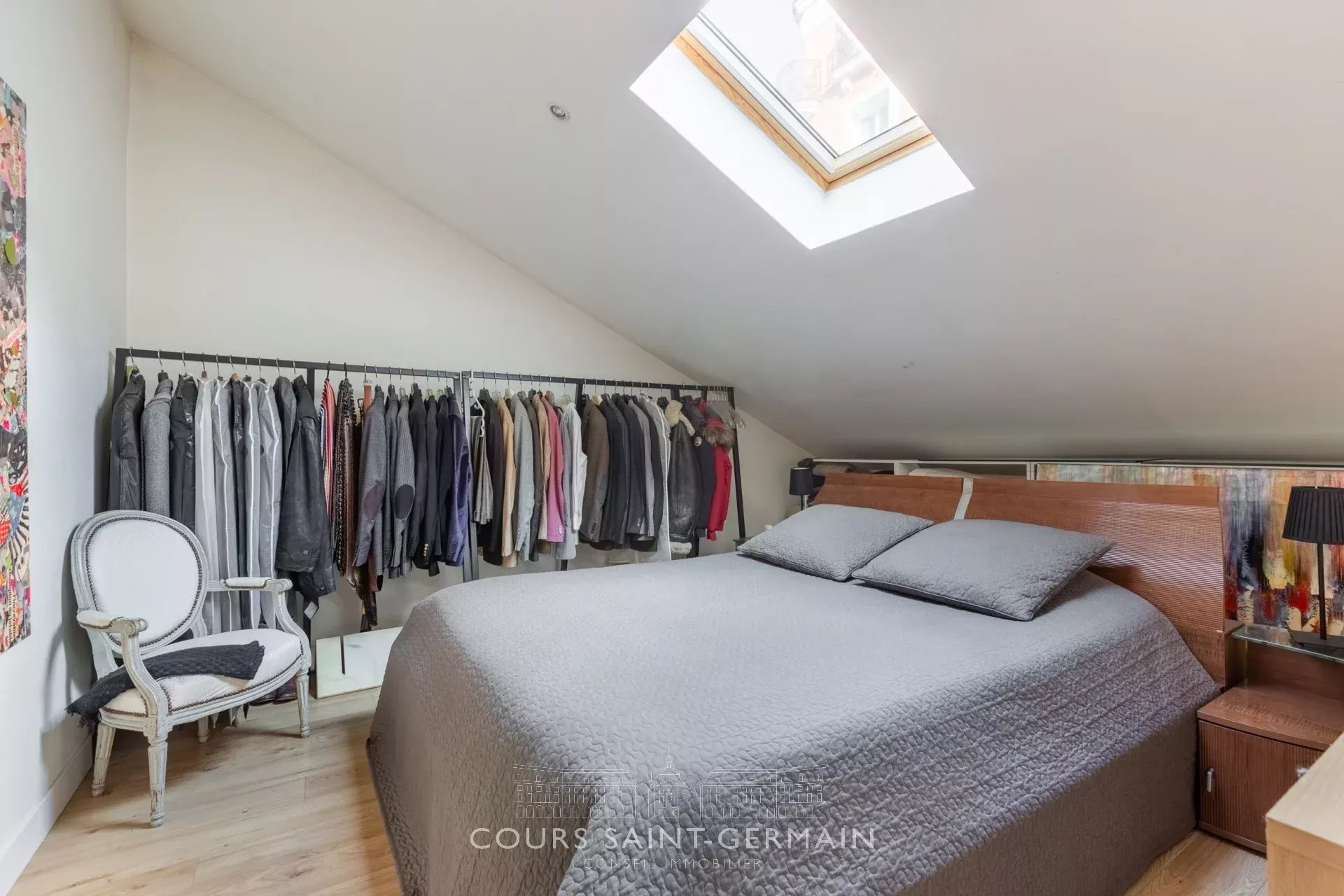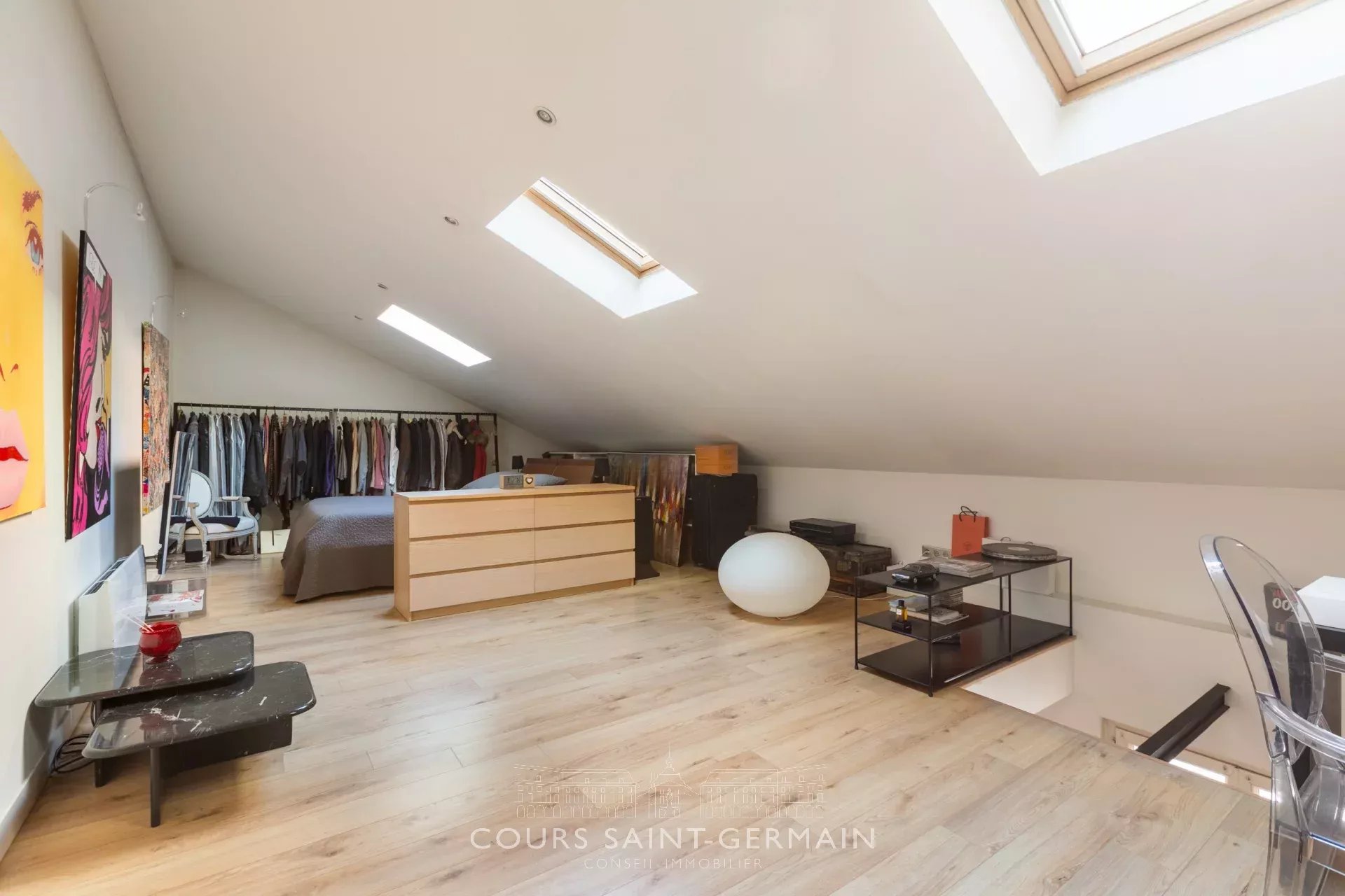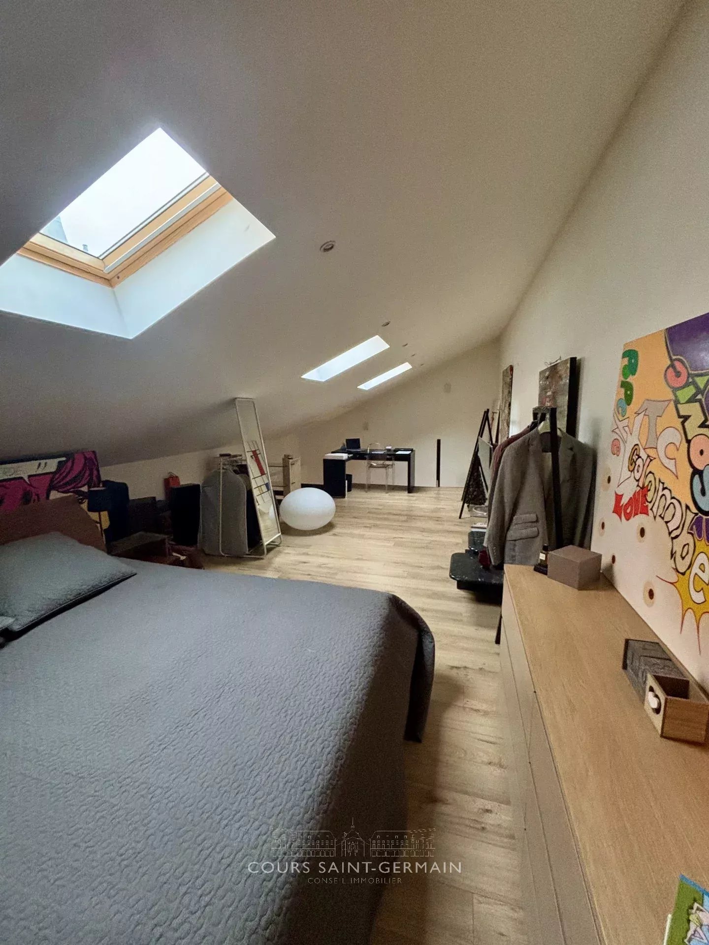 Nichée dans une impasse paisible du quartier Moulin Vert, cette maison rare combine le calme d’un environnement arboré avec la vie de quartier d’Alésia. Une véritable pépite, idéale pour les amateurs de volumes atypiques et d’ambiances contemporaines au cœur du 14e arrondissement. Ravalement et toitures révisés en juin 2025. Rez-de-chaussée : Entrée avec visiophone, Garage de 16 m² avec porte et prise électriques; Salle d’eau à l’italienne, Buanderie avec dressing, WC indépendants avec lave-mains et vaste espace de rangement. Au 1er étage se trouve un grand séjour de 38m2 avec une cuisine ouverte entièrement équipée donnant sur un grand balcon ou l'on peut déjeuner à deux. Au 2ème étage une suite parentale. Possibilité de créer 2 chambres et/ou une salle de bains. (arrivées d’eau, évacuations et prises déjà installées). (1 minute à pied) : Bus 58 et 62, Monoprix, pharmacie, restaurants, boulangeries, fleuriste, caviste, buraliste, La Poste, boucherie, etc.