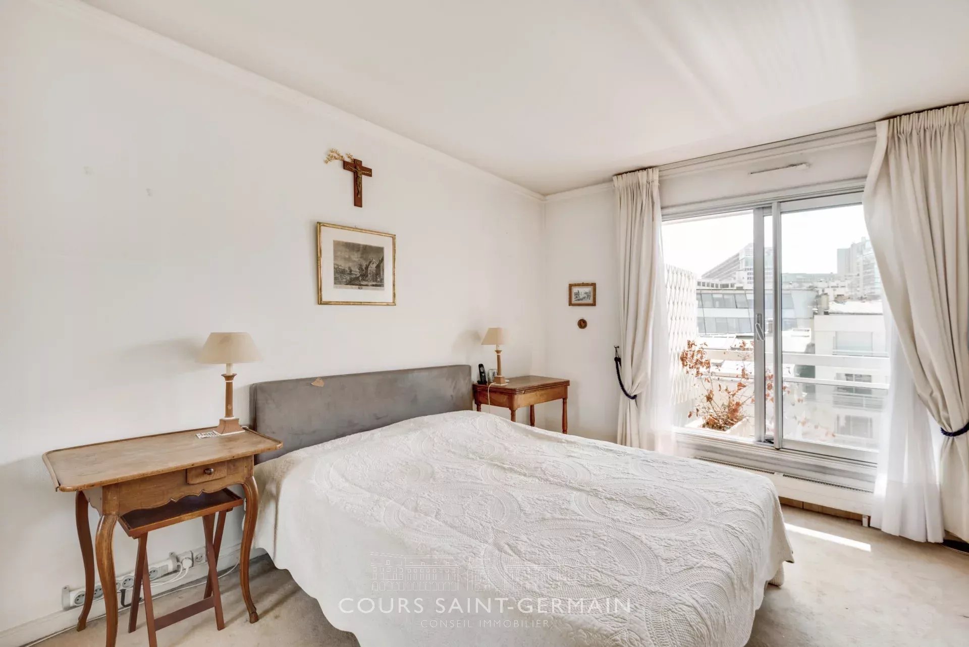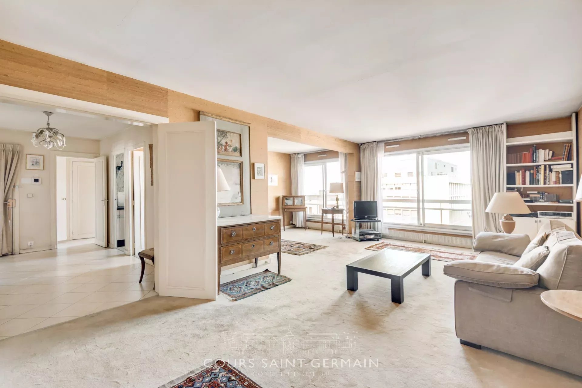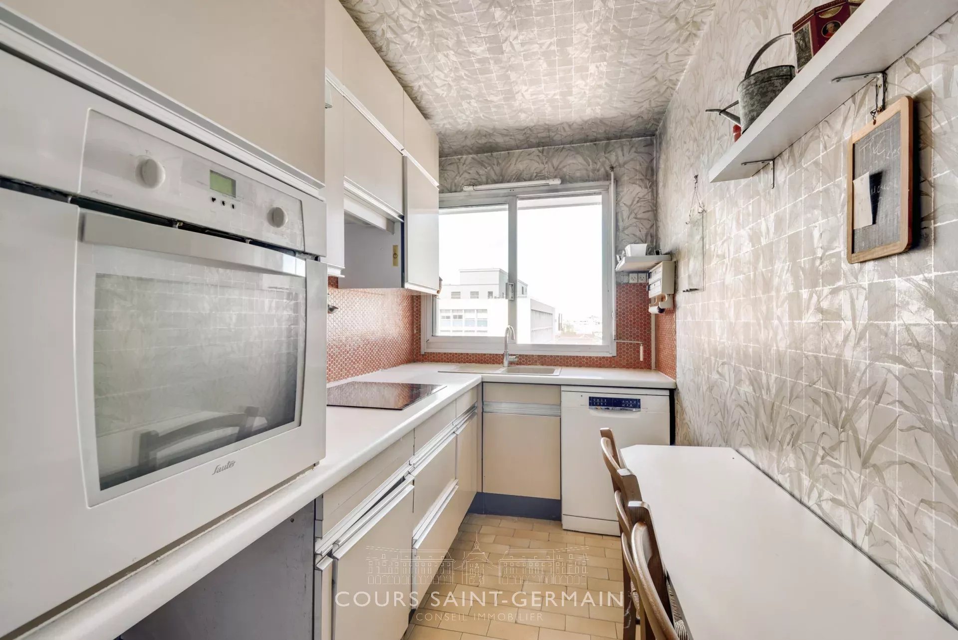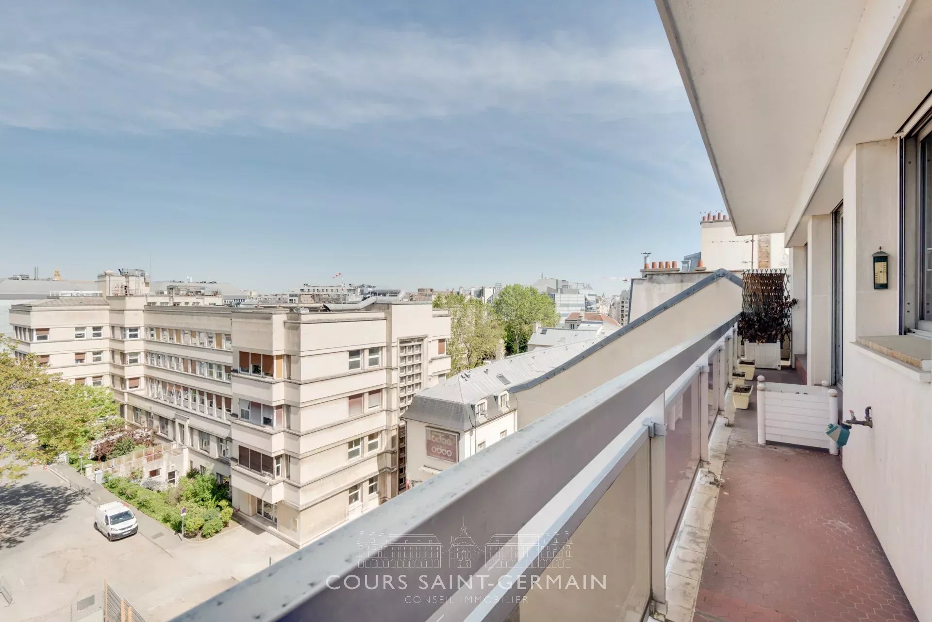 Bel appartement de 115 mètres carrés très clair et ensoleillé, étage élevé avec vue dégagée, balcons et terrasse, grand salon salle à manger, 3 chambres dont deux sur cour et jardin au calme, deux salles de bains, nombreux rangements et dressing, toilette invité. Belle copropriété très bien entretenue avec jardin et gardien à demeure, très bien sécurisée par code et interphone. Une cave vient compléter ce bien. 2 grandes places de parking incluses dans le prix.