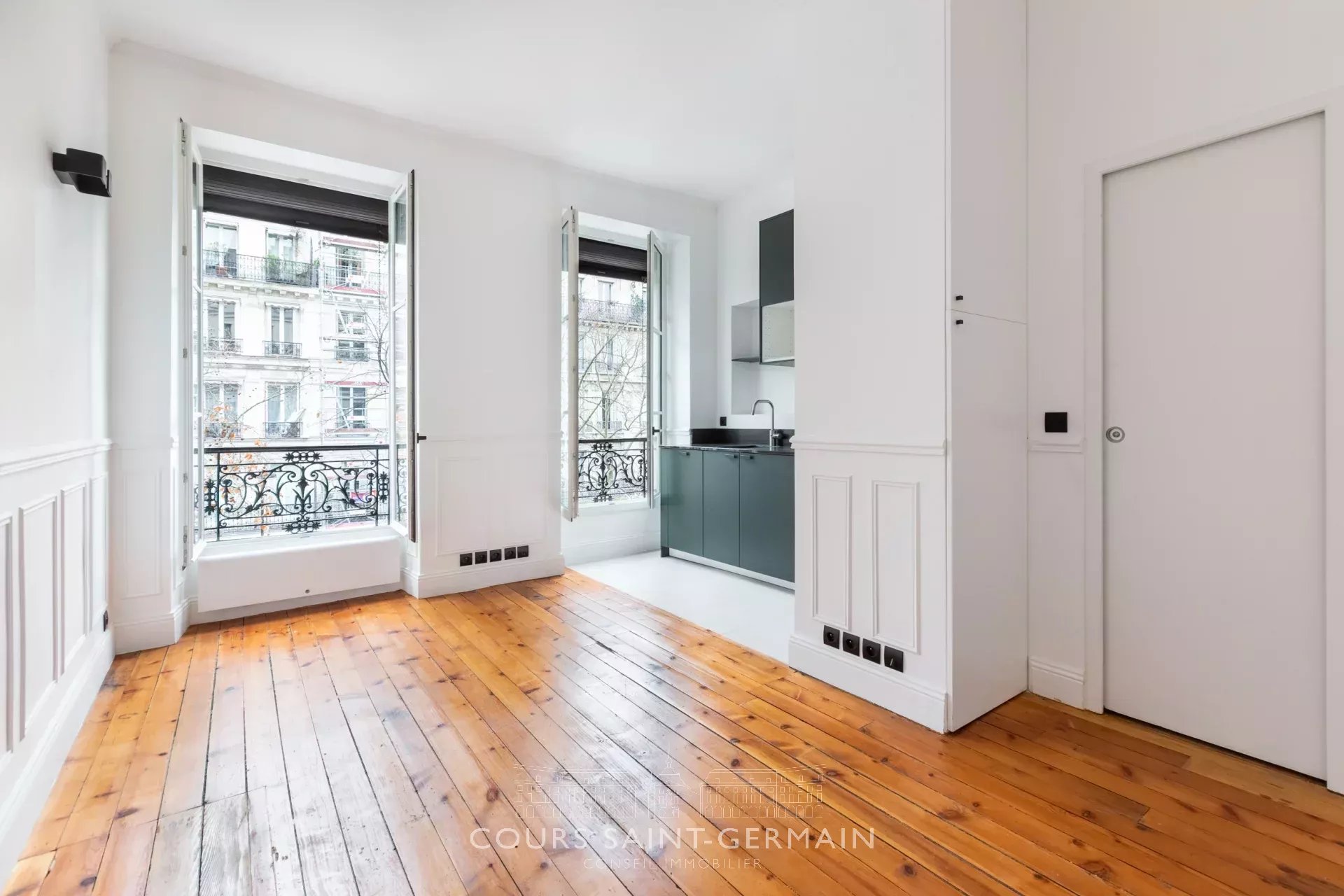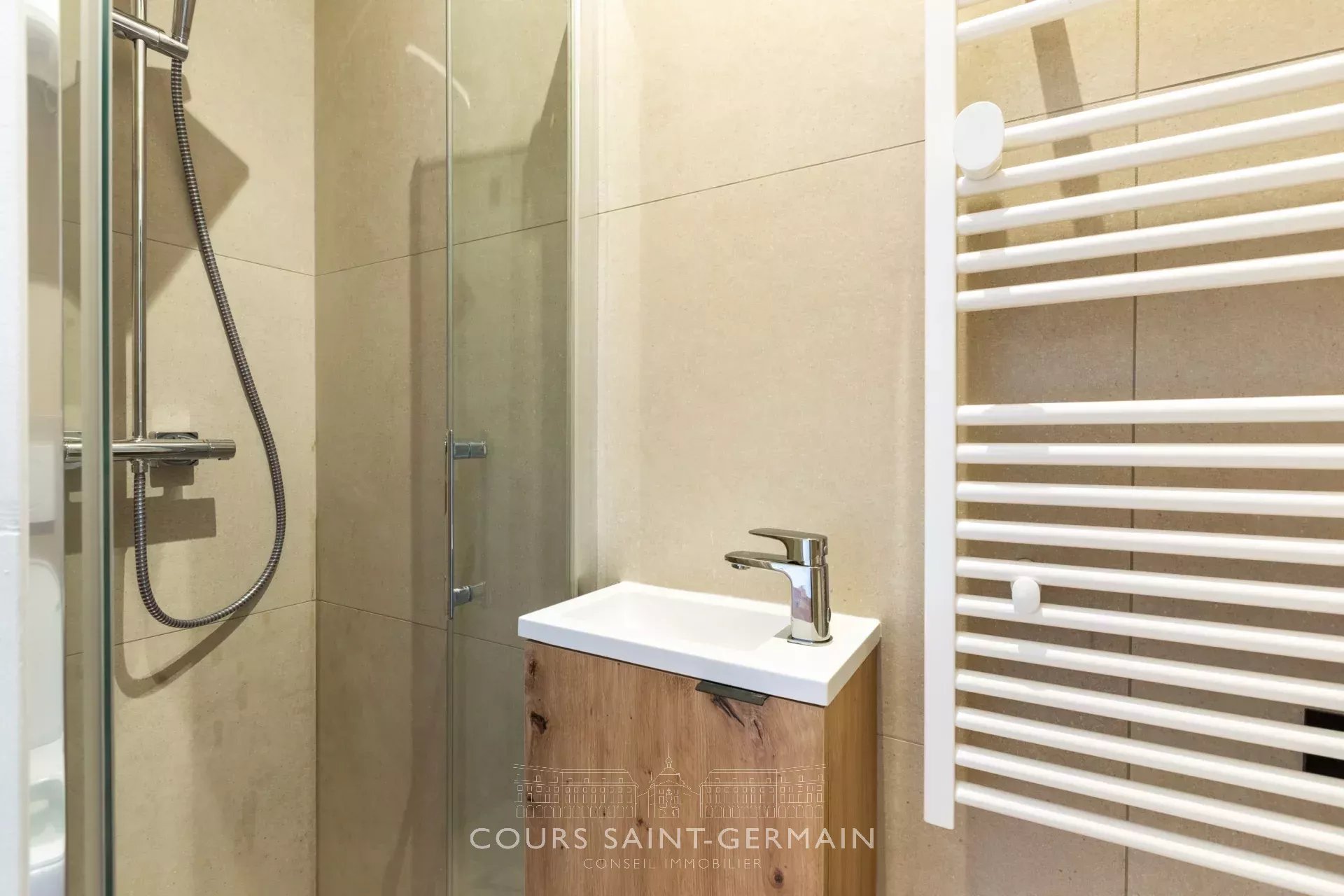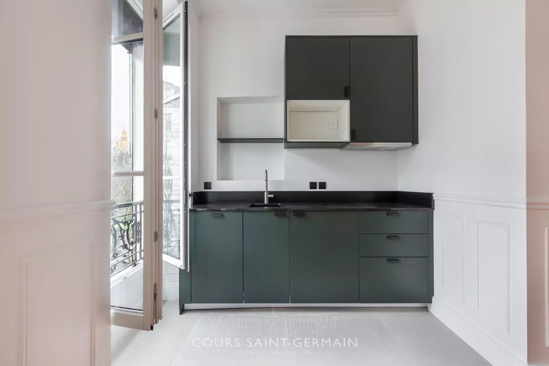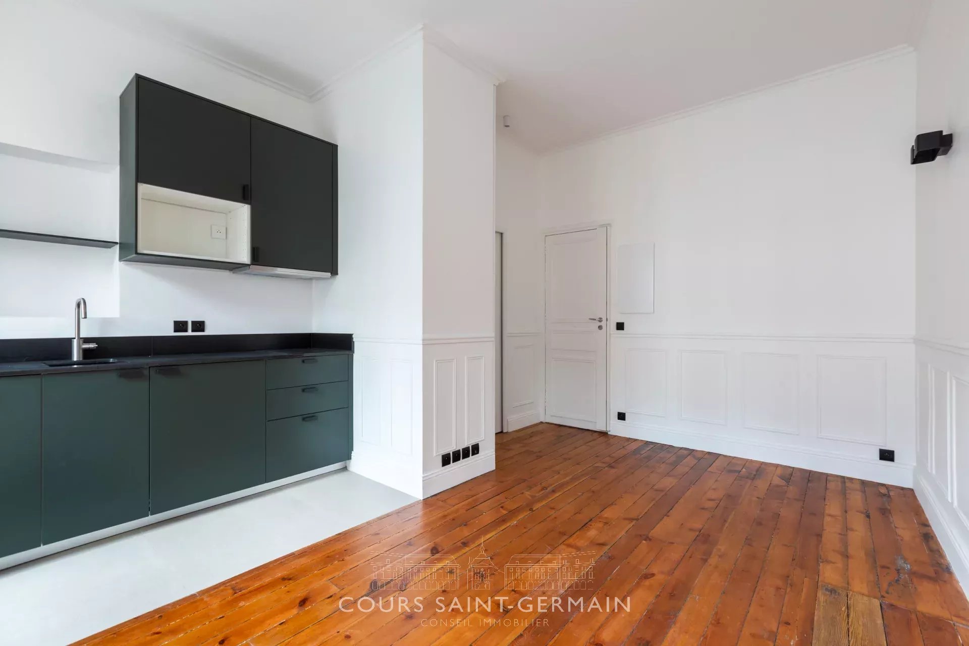 Situé entre la rue de Grenelle et la rue Saint-Dominique, au 3ᵉ étage sans ascenseur d’un élégant immeuble haussmannien de 1875, ce studio, entièrement refait à neuf, offre un cadre de vie recherché au cœur du 7ᵉ arrondissement. Il se compose d’une pièce de vie avec cuisine ouverte, bénéficiant d’une belle luminosité, créant un espace agréable au quotidien. La salle de douche avec toilettes est fonctionnelle et bien agencée. Le charme de l’ancien est préservé, avec de belles moulures. L’appartement est en excellent état, prêt à être occupé, et associe harmonieusement cachet haussmannien et rénovation contemporaine. Un bien idéal pour un pied-à-terre, un premier achat ou un investissement patrimonial, dans un secteur prisé à proximité immédiate des Invalides.