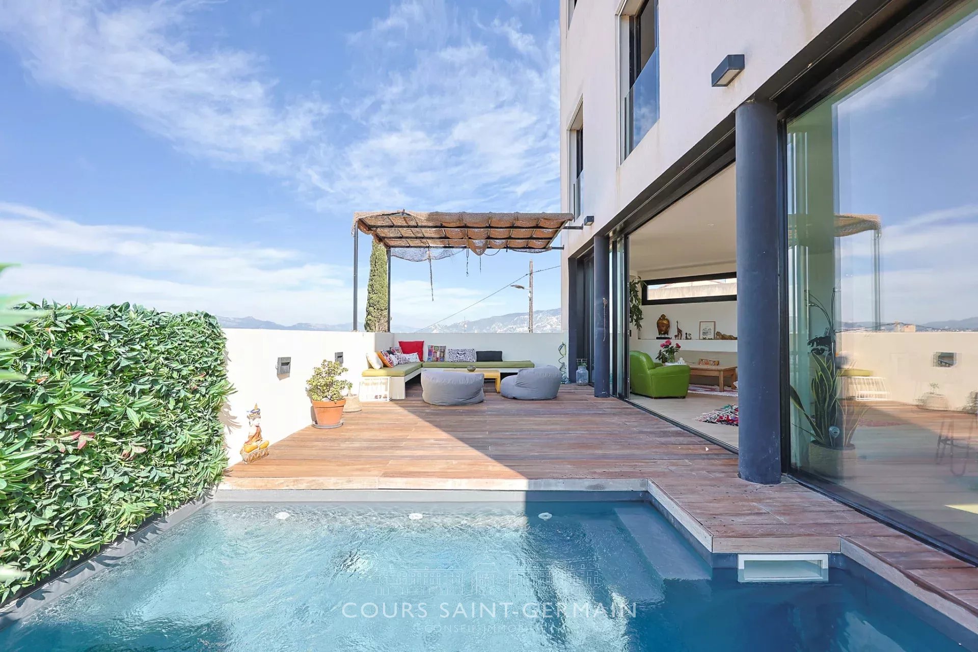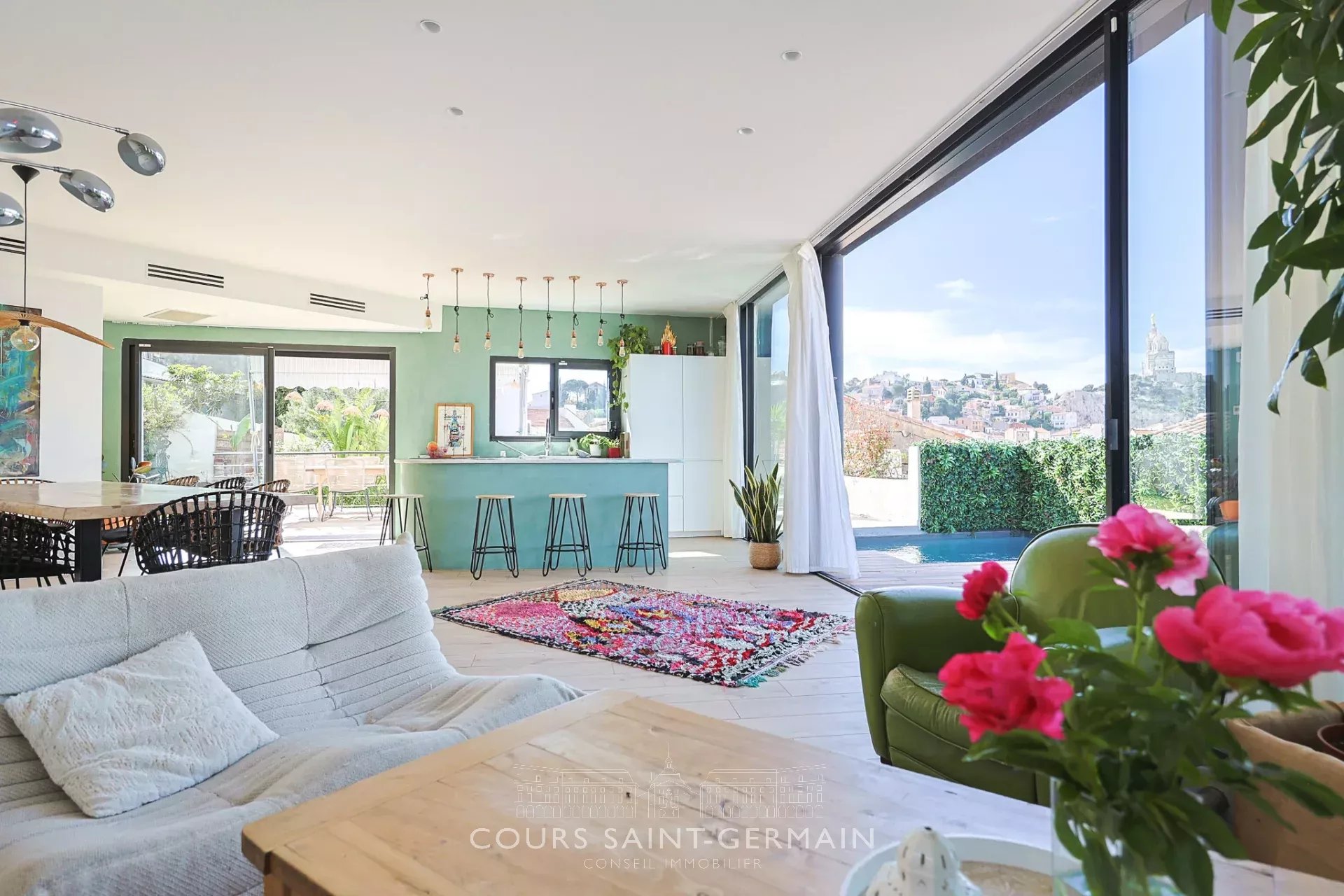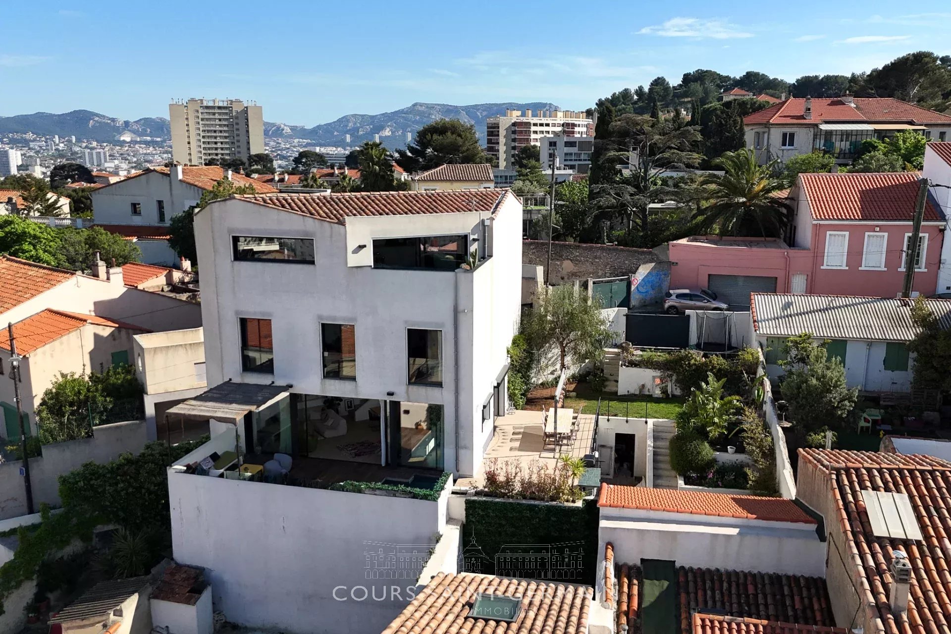 Maison d'architecte qui tutoie la Bonne Mère à Vauban. Avec ses 100 mètres carrés de terrasse, face à la Bonne Mère, cette maison d'architecte de 250 mètres carrés comprend un grand salon de 60 mètres carrés, 7 chambres, 5 salles de bains, dont une superbe suite parentale avec une vue stupéfiante et ses trois expositions différentes, sa grande salle de bains, son dressing et son coin bureau. un sauna, une piscine, un joli jardin avec vue, une aire de jeux pour les enfants, en font une maison rare sur le marché qui saura vous séduire grâce à son emplacement remarquable. Grand garage couvert avec un double emplacement pour voitures. Bien d'exception rare dans ce quartier. Olivier Dujol 06 83 26 57 25