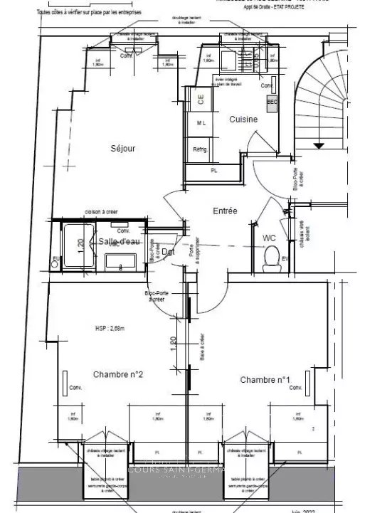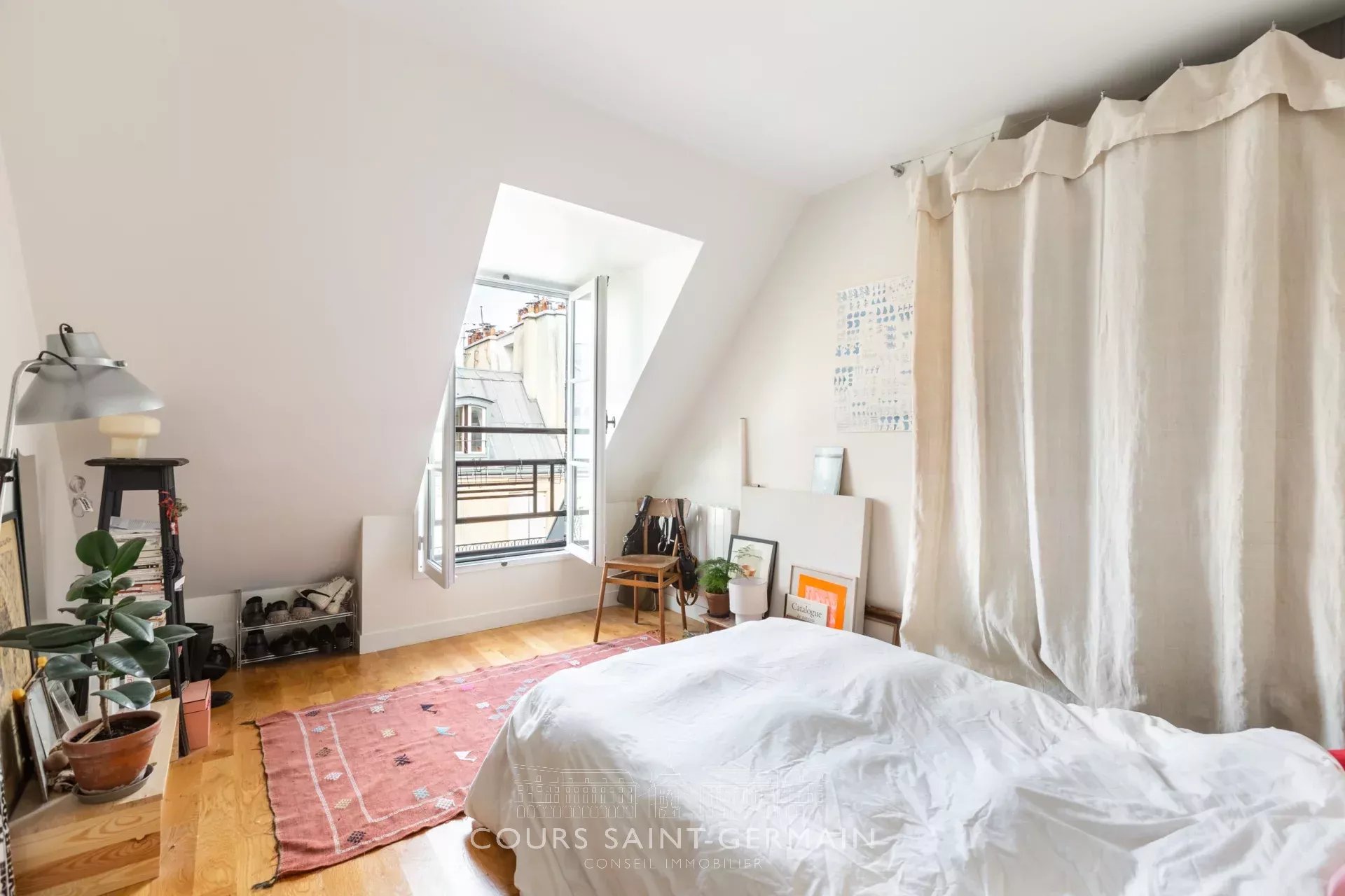 Rue Sedaine - Dans un bel immeuble en pierre de taille, dont la mise en place d'un ascenseur est à l'étude, cet appartement situé au 6e étage a une belle lumière et de jolies vues dégagées. Entièrement refait en 2024, il est composé d'une cuisine séparée, une salle d'eau et WC séparé et deux chambres. Il est loué jusqu'en janvier 2027 à 1401 €/mois.
