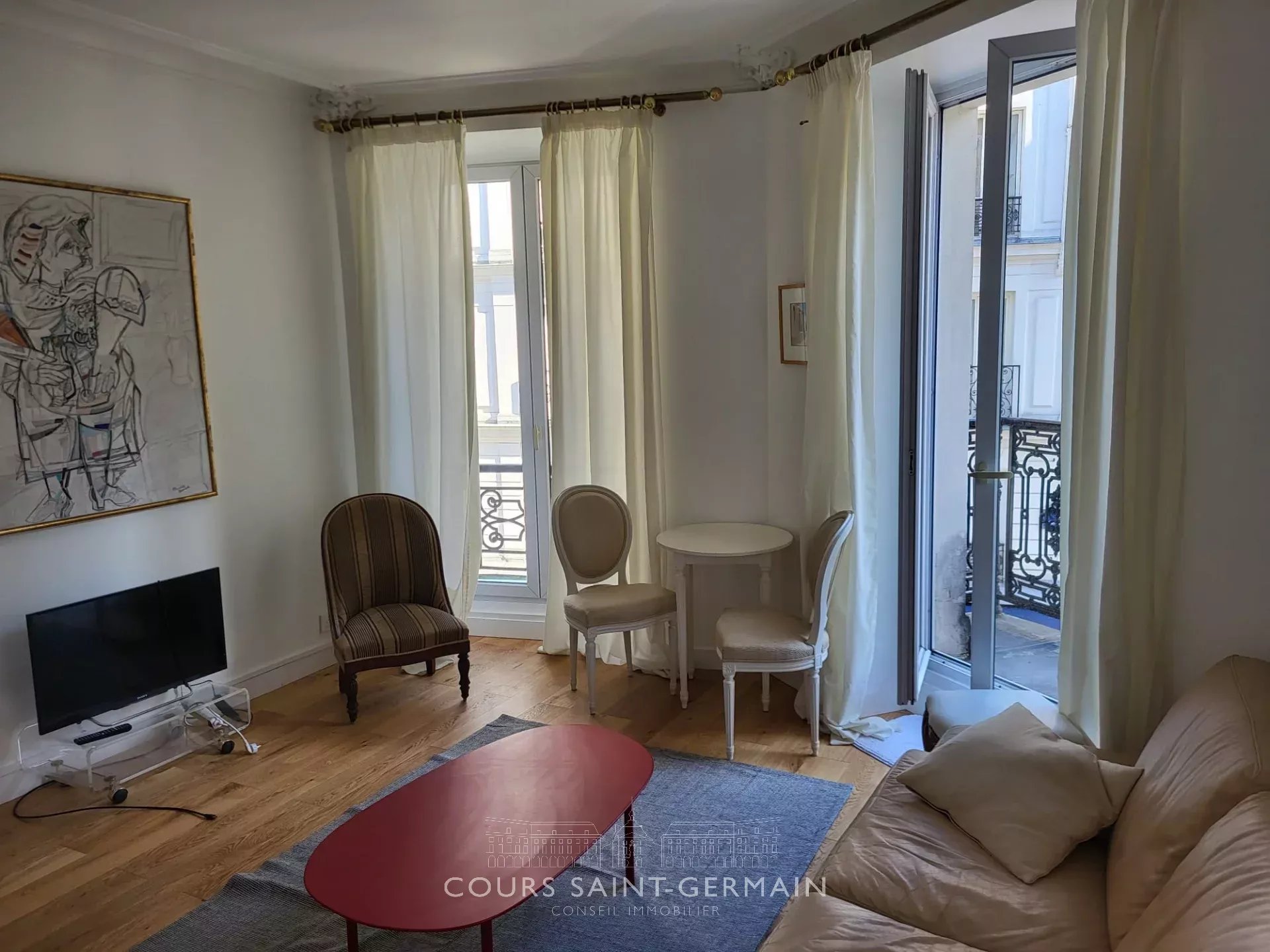 75009 - Rue Condorcet - Proche du Métro Anvers Situé au deuxième étage avec ascenseur, un appartement de deux pièces principales entièrement meublé comprenant une entrée, un séjour, un bureau / salle à manger, une chambre, une cuisine entièrement équipée et une salle d'eau avec WC. L'appartement dispose également d'un balcon. Eau chaude et chauffage individuels électriques individuels. Libre. Contact Mme BOUSSOGNE 06 66 11 61 26